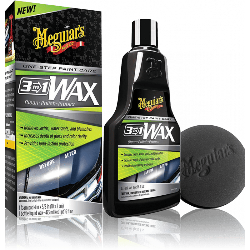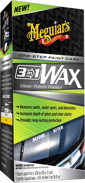 Meguiar’s 3 in 1 Wax är en innovativ enstegsprodukt som rengör, polerar och skyddar lacken i ett enda moment. Den tar effektivt bort tvättrepor, torkfläckar och andra lättare defekter samtidigt som den återställer glansen. En unik kombination av syntetisk vax och carnaubavax ger en högglansig finish med imponerande vattenavrinning. För ännu bättre resultat kan du förbereda ytan med Meguiar’s Ultimate Compound.