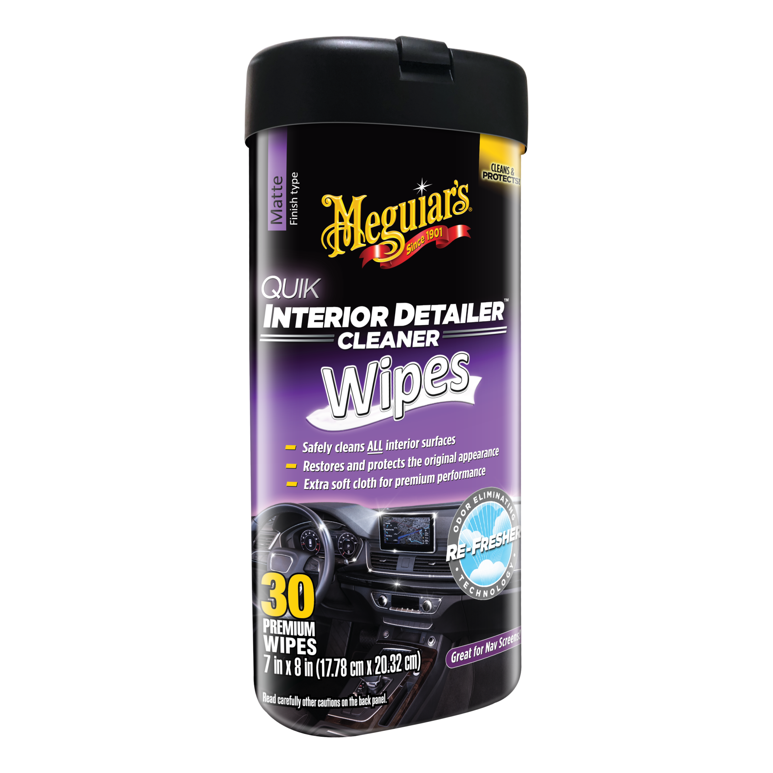 Meguiar’s Quik Interior Detailer Wipes är det snabbaste sättet att hålla bilens interiör fräsch mellan ordentliga rengöringar. Perfekt att ha i bilen för att snabbt torka bort smuts och fingeravtryck när du är på språng.