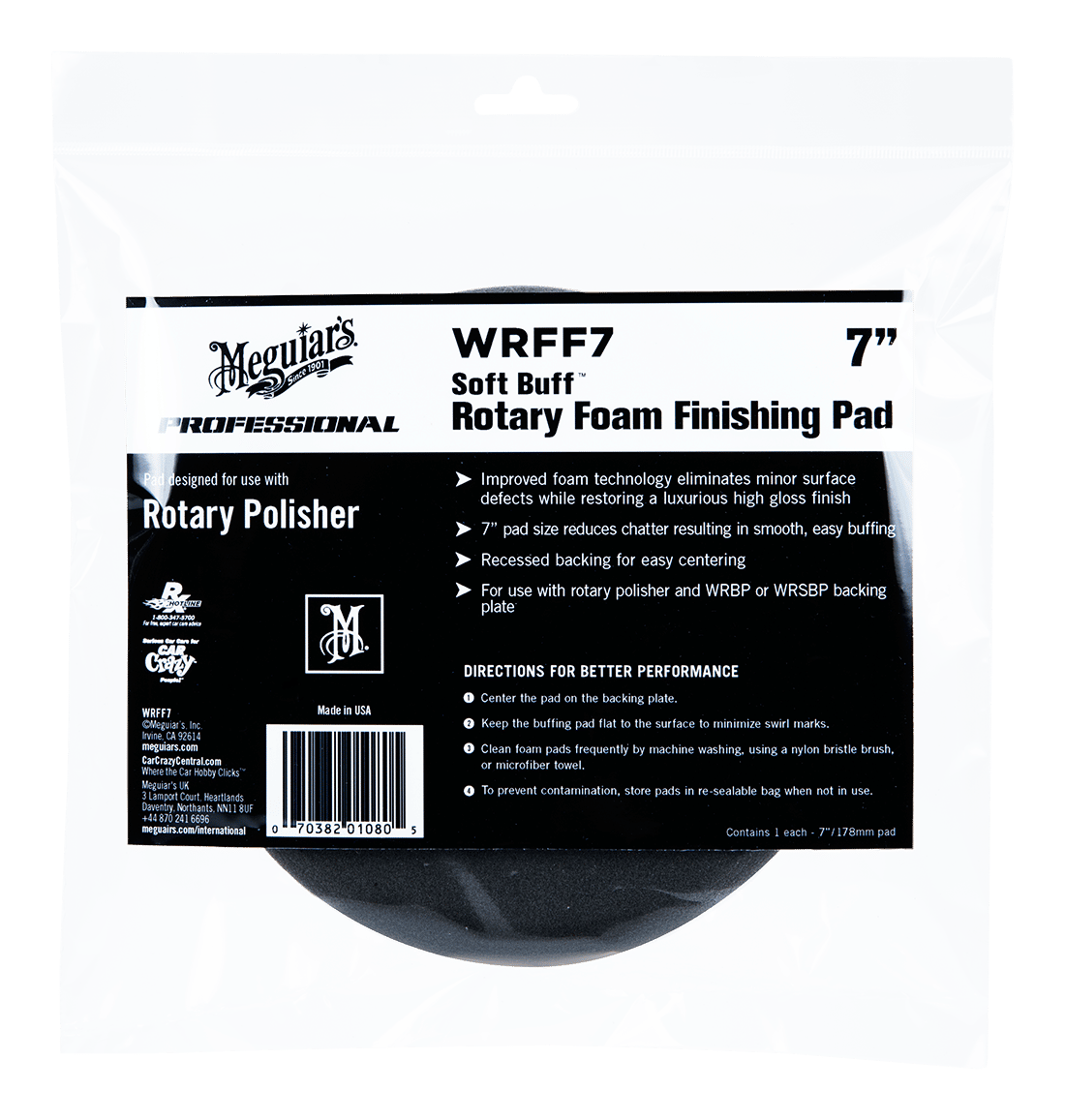 Meguiar’s Rotary Foam Finishing Pad 7″ är framtagen för att skapa en perfekt yta vid slutsteget i poleringen. Den mjuka skumstrukturen gör det enkelt att fördela trycket jämnt och minimera risken för hologram eller brännmärken. Riktad mot både entusiaster och professionella användare som vill uppnå ett spegelblankt resultat.